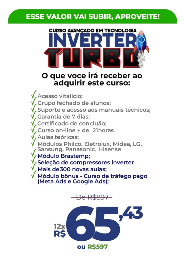 o que você vai aprender no curso AVANÇADO EM TECNOLOGIA INVERTER TURBO